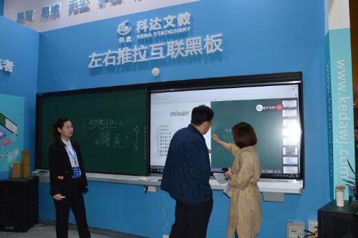 科達文教攜行業(yè)領先的互聯(lián)黑板系列產(chǎn)品和解決方案亮相展會,為全國各地與會者帶來全新的課堂教學體驗;ヂ(lián)黑板的左側為上下推拉的互聯(lián)黑板,右側配置了高清LED顯示大屏。與傳統(tǒng)黑板相比,互聯(lián)黑板既保留了板書功能,同時可將板書內(nèi)容同步放大顯示在LED大屏幕上。