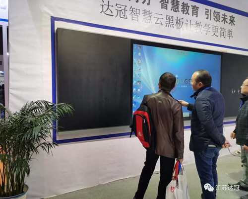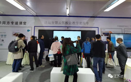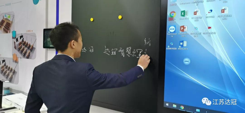 在達(dá)冠教育展位聚集了眾多來賓,大家紛紛上前體驗(yàn)產(chǎn)品,多人同時(shí)書寫,一邊書寫一邊擦除,都可以輕松實(shí)現(xiàn),智慧云黑板觸控模組具有自動(dòng)感應(yīng)識(shí)別功能,消除感應(yīng)遲鈍狀態(tài),達(dá)到與手機(jī)同等靈敏度效果,即使黑板表面有大量積水仍可正常觸控。