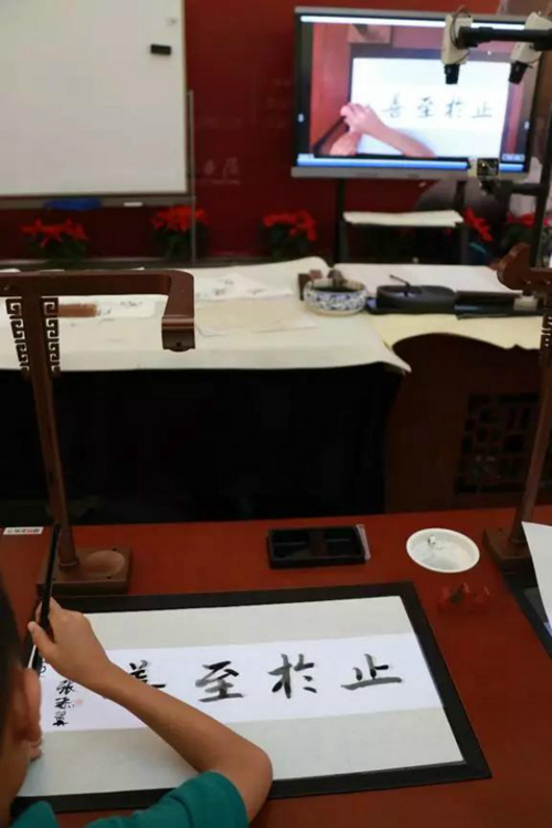 以傳統(tǒng)為基礎(chǔ),華文眾合智慧書法教室秉承“傳統(tǒng)與科技融合,而不摒棄傳統(tǒng)”的理念,采用傳統(tǒng)的毛筆、墨汁和宣紙進(jìn)行教和學(xué),避免水寫、電子模擬等書寫體驗(yàn)給學(xué)生造成不良影響。學(xué)生從最初學(xué)、練書法開始,從始至終都使用筆墨紙,養(yǎng)成一致的筆觸感,脫離平常練習(xí)的教室也能使用筆墨紙寫出漂亮的毛筆字。