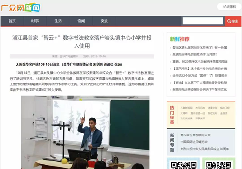 浦江縣首家數(shù)字書法教室正式啟用,獲金華廣電融媒體報(bào)道