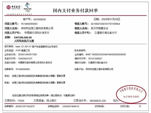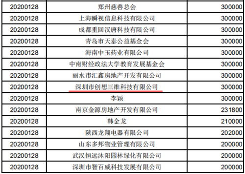創(chuàng)想三維向武漢市捐贈(zèng)30萬用于疫情防治,共同抗擊疫情