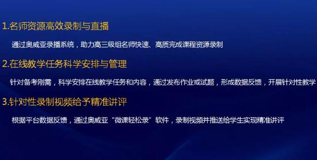 短短數(shù)日,通過奧威亞錄播系統(tǒng),華附高效完成高三全科近60節(jié)復(fù)習(xí)專題指導(dǎo)課程資源錄制。2月10日,通過“奧威亞Alive”直播平臺,名師資源正式面向華附及廣東省部分高三學(xué)子直播,獲得了廣東衛(wèi)視、廣東經(jīng)濟(jì)科教頻道、羊城派等多家媒體報道。