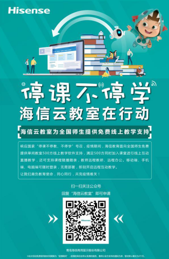 “停課不停學(xué)”是我們國家在疫情時期的濟(jì)急舉措,但同時亦是互聯(lián)網(wǎng)+教育類企業(yè)承擔(dān)社會責(zé)任、展現(xiàn)使命擔(dān)當(dāng)?shù)臅r刻。今日海信教育響應(yīng)國家“停課不停學(xué)”的號召,即日起至疫情結(jié)束之日,海信教育為全國學(xué)校提供免費(fèi)500方云教室解決方案,幫助學(xué)校與機(jī)構(gòu)做到“停課不停學(xué)”。只需關(guān)注“海信商用顯示”公眾號,回復(fù)“海信云教室”進(jìn)行注冊,審核通過后即可免費(fèi)獲得500方海信云教室使用賬號。