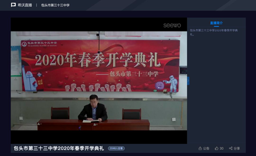 2020年2月16日上午10時(shí),內(nèi)蒙古包頭市第三十三中學(xué)迎來了一個(gè)“特別”的開學(xué)典禮。今天的開學(xué)典禮現(xiàn)場沒有鮮花,也沒有掌聲。散落在家的一個(gè)個(gè)師生,通過在線錄播,凝聚在了一起。但不變的是校長的殷切期望,老師們的孜孜不倦的教導(dǎo)和同學(xué)們即將和往常一樣學(xué)習(xí)到的新知。