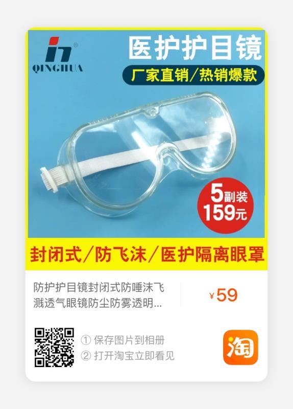 ▲青華科教醫(yī)用隔離眼罩淘寶鏈接