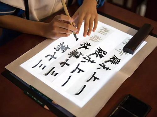 華文眾合2016年推出專利產(chǎn)品交互式數(shù)字臨摹臺(tái),抗壓、耐磨、防水、自動(dòng)調(diào)節(jié)亮度,鋪上一張宣紙,用毛筆蘸著墨汁就可摹出讓人信心大增的字,從最初學(xué)、練書法開始,從始至終都使用傳統(tǒng)的筆墨紙,養(yǎng)成一致的筆觸感,脫離平常練習(xí)的教室也能寫出漂亮的毛筆字。