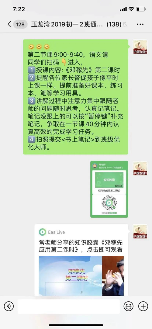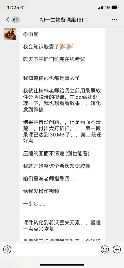 網(wǎng)絡(luò)教學(xué)不等同線下教學(xué),即使有多年豐富經(jīng)驗的優(yōu)秀教師,也像初上講臺的新教師一樣,抱著勇于學(xué)習(xí),敢于鍛煉的心態(tài),深信精備細磨才會出佳品。每個學(xué)科每周至少兩次固定時間集體備課,其余時間隨時在備課組群里進行交流和探討。