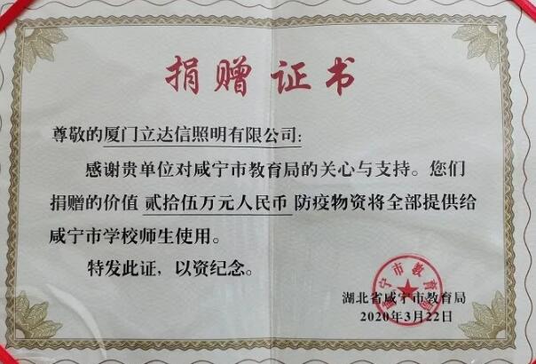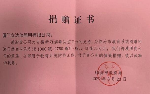 作為教育照明領(lǐng)域的開創(chuàng)者和領(lǐng)跑者,立達(dá)信一直心系教育,關(guān)注學(xué)校防疫需求,分批次采購(gòu)了價(jià)值600萬(wàn)防疫物資,并陸續(xù)向全國(guó)各地學(xué)校進(jìn)行無(wú)償捐贈(zèng),助力開學(xué)季!