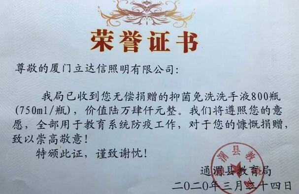 立達(dá)信教育照明合作伙伴陳總表示:“選擇立達(dá)信這樣的企業(yè)合作,從他們身上我們可以更多的看到一個(gè)大品牌所具備的社會(huì)擔(dān)當(dāng)和責(zé)任,很高興能夠跟立達(dá)信一起做這樣的暖心捐贈(zèng)!”