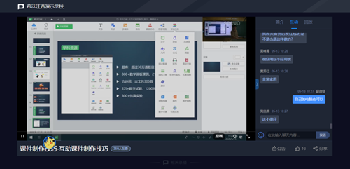5月12日-5月14日為培訓的第一階段,自愿報名參加培訓的老師人數(shù)高達1000人。培訓內(nèi)容根據(jù)當前開展線上教育情況和提升課堂教學質(zhì)量兩方面實際進行了設計,授課教師圍繞交互式多媒體設備互動課件制作基礎、資源素材獲取、互動課件制作技巧、課件排版、班級管理及微課錄制六個板塊展開。