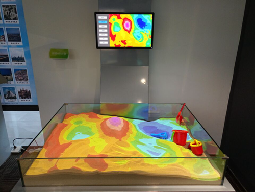 地理AR沙盤是一款適用于初高中地理教學(xué)的數(shù)字化投影沙盤。采用AR增強現(xiàn)實、傳感等技術(shù),即時識別互動沙盤形態(tài),依據(jù)沙盤變化,將不同的地勢地貌形態(tài)通過虛擬投影真實展示。