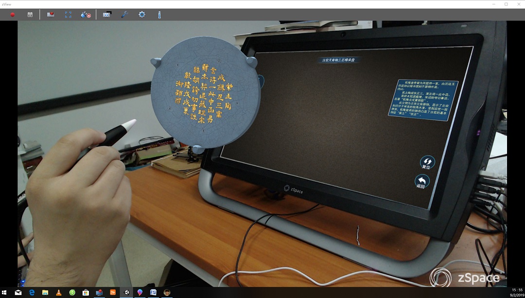 系統(tǒng)依托于桌面級便攜式一體化虛擬現(xiàn)實(shí)設(shè)備,該設(shè)備集成VR、AR、MR等多種信息技術(shù),以擬人化的表現(xiàn)手法,讓文物開口“說話”,讓歷史“活”起來,生動再現(xiàn)從遠(yuǎn)古到近代的中華文明進(jìn)程。