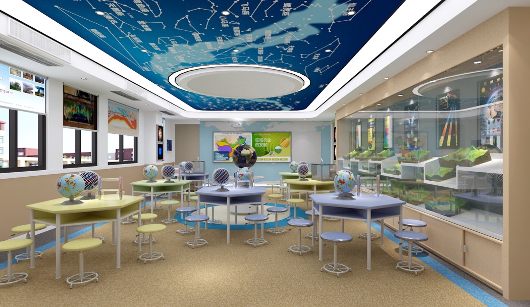 以“數(shù)字化”為主導,以數(shù)字星球系統(tǒng)為核心,遵循教育部《中學地理專用教室建設規(guī)范》,配備常規(guī)教學類的交互地圖教學系統(tǒng);創(chuàng)新應用類的虛擬現(xiàn)實VR教學系統(tǒng)、地理AR沙盤、全息教學系統(tǒng);實驗活動類的地理交互學具、地理綜合實踐套裝;并輔以教學通用設備以及環(huán)境創(chuàng)設,能夠把地理課本上的知識更直觀、生動、全方位的精彩呈現(xiàn),讓學生打開傳統(tǒng)的思維模式,以一種更加生動活潑的方式學習地理,有利于教師教學活動的開展和學生學習效率的提高。