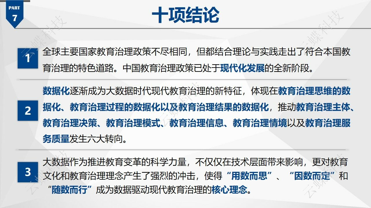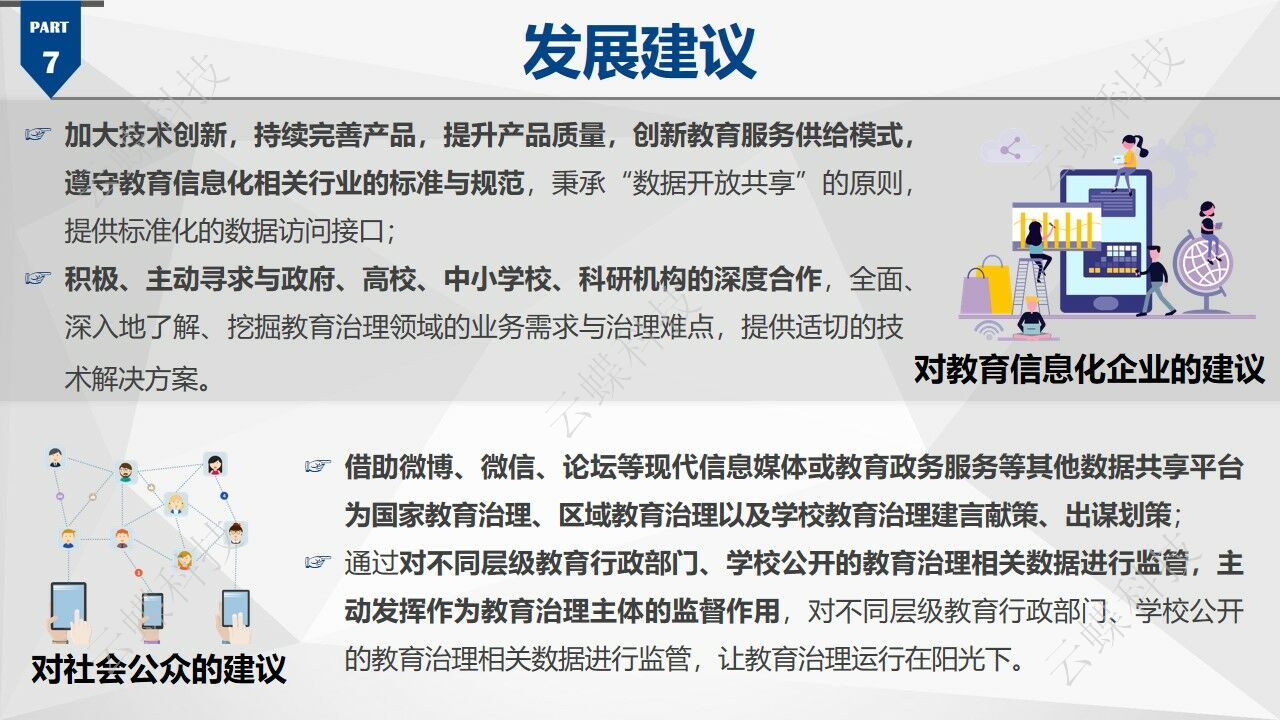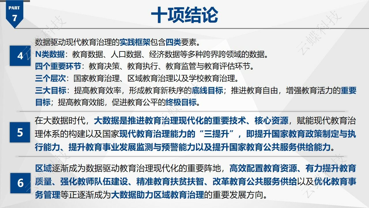 總結報告的整體內容,《中國基礎教育大數據發(fā)展藍皮書》歸納出了十大結論、四大趨勢、五大挑戰(zhàn),并向各級教育管理者、教育信息化企業(yè)和社會公眾提出了相應的建議。