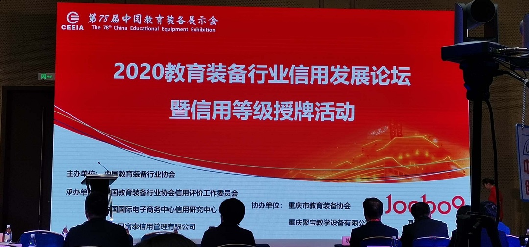 近日,2020教育裝備行業(yè)信用發(fā)展論壇暨信用等級授牌活動在重慶舉行。本次論壇活動由中國教育裝備行業(yè)協(xié)會主辦,中國教育裝備行業(yè)協(xié)會信用評價工作委員會、中國國際電子商務(wù)中心信用研究中心、北京國富泰信用管理有限公司承辦,重慶市教育裝備協(xié)會、重慶聚寶教學(xué)設(shè)備有限公司協(xié)辦。來自全國各地方教育裝備管理部門、行業(yè)協(xié)會、學(xué)校、研究機構(gòu)及教育裝備企業(yè)代表300余人參加。