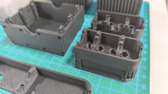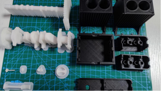 這是引擎的所有零件,使用了市面上采購的質(zhì)量2種不同的耗材。都是一次性打印成功,使用了0.03mm的層高,整個過程打印長達(dá)30多小時。可以看到持續(xù)工作下,A6的打印效果發(fā)揮穩(wěn)定。