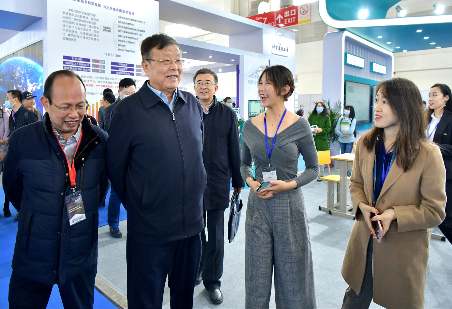 作為本屆城博會(huì)智慧教育唯一參展企業(yè),廣州云蝶科技有限公司與北京師范大學(xué)未來(lái)教育高精尖創(chuàng)新中心聯(lián)合參展,帶來(lái)以“數(shù)據(jù)化”為特征的高水平的教育治理理念與成果。期間,住房和城鄉(xiāng)建設(shè)部副部長(zhǎng)黃艷,住房和城鄉(xiāng)建設(shè)部總工程師李如生分別在展會(huì)首日和第二日到訪云蝶科技展區(qū),仔細(xì)聽(tīng)取相關(guān)情況匯報(bào),云蝶科技副總裁劉麗麗博士等陪同參觀。