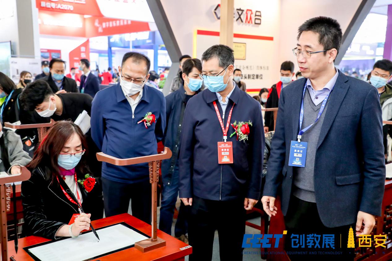 展會(huì)首日,陜西省委教育工委委員、陜西省教育廳副廳長(zhǎng)趙昶葆,教育部基礎(chǔ)教育司裝備與信息化處處長(zhǎng)張權(quán),教育部教育裝備研究與發(fā)展中心科研處處長(zhǎng)劉強(qiáng),陜西省教育廳教育技術(shù)裝備管理中心主任趙夢(mèng),還有來(lái)自陜西、甘肅、寧夏、新疆和青海等地區(qū)的教育界領(lǐng)導(dǎo)、專家和老師共同蒞臨華文眾合展位參觀指導(dǎo),詳細(xì)了解華文眾合第7代智慧書法教室,現(xiàn)場(chǎng)人氣火爆,咨詢洽談合作的客戶數(shù)不勝數(shù)。