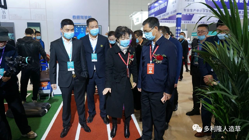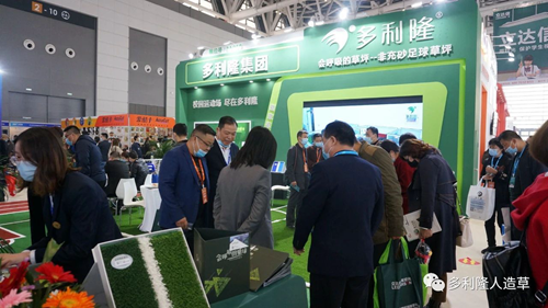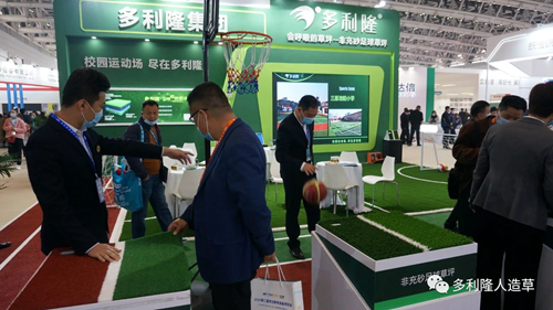 展會(huì)現(xiàn)場(chǎng),多利隆展位吸引了很多觀眾,大家興致高昂地詢問(wèn)和體驗(yàn)多利隆產(chǎn)品,并與現(xiàn)場(chǎng)集團(tuán)人員溝通交流,了解人造草坪行業(yè)的發(fā)展和相關(guān)動(dòng)態(tài)。
