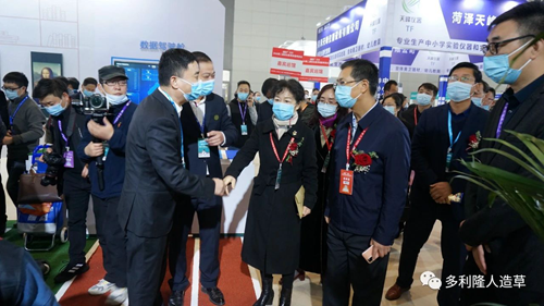 展會(huì)期間,省教育廳趙廳長(zhǎng)、教育裝備中心趙主任等領(lǐng)導(dǎo)蒞臨多利隆現(xiàn)場(chǎng)考察指導(dǎo),多利隆董事長(zhǎng)王海先生攜重要集團(tuán)人員進(jìn)行接待,王總就我司的產(chǎn)品和技術(shù)特色、校園場(chǎng)地建設(shè)等方面向領(lǐng)導(dǎo)進(jìn)行了匯報(bào)和講解。