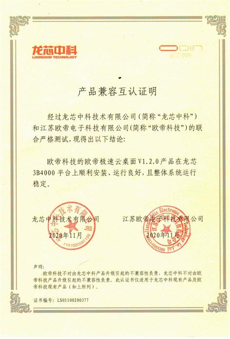 近日,歐帝極速云桌面V1.2.0與龍芯3B4000平臺、統(tǒng)信桌面操作系統(tǒng)V20完成互認證;诜⻊掌魈摂M化技術與音視頻流化技術的極速云在推動教育信息化國產化上又邁進一步。