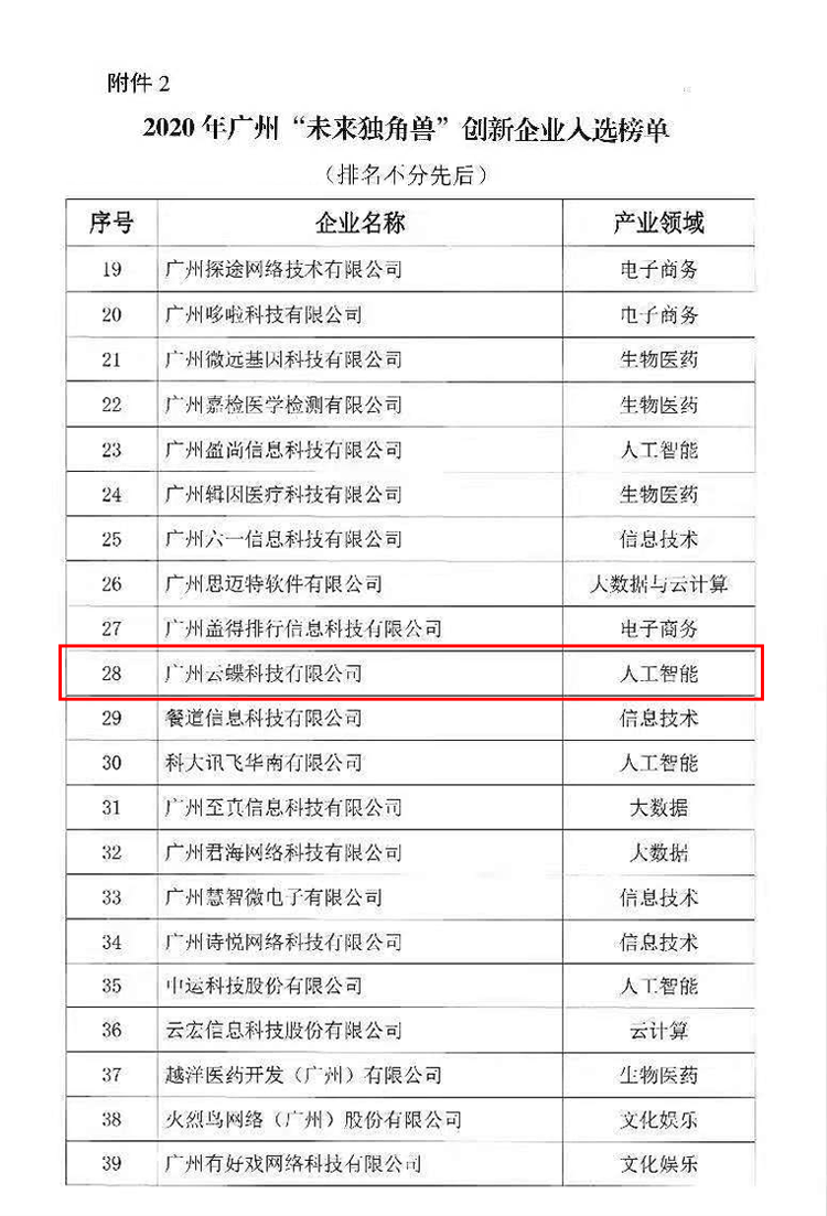 正式官宣!云蝶科技獲2020年廣州“未來獨(dú)角獸”創(chuàng)新企業(yè)稱號(hào)