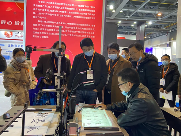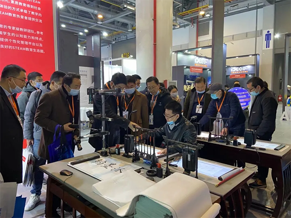 短短兩日,羿飛接待了眾多慕名前來的訪客,所展出的系列翰墨派云書法教學(xué)設(shè)備及整體解決方案受到了許多教育工作者的認可,大家紛紛駐足觀看并親自揮毫體驗。