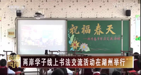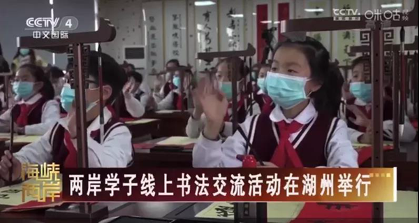 據(jù)中央電視臺中文國際頻道“海峽兩岸”欄目報道,27日,兩岸春節(jié)書法藝術(shù)交流活動在浙江省湖州市練市小學(xué)舉行,臺灣省南投縣魚池鄉(xiāng)魚池小學(xué)的百余名師生通過視頻連線的方式參與交流,共同感受中華傳統(tǒng)文化的魅力。