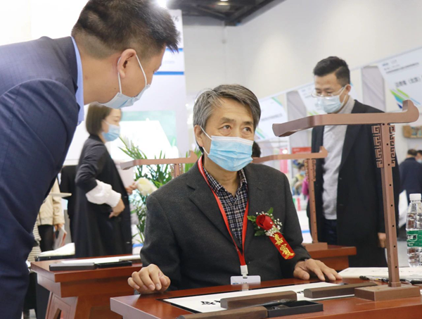 各領(lǐng)導在展會首日蒞臨展位現(xiàn)場,對華文眾合第七代智慧書法教室和粉筆教室進行了一番考察,充分肯定了華文眾合作為行業(yè)代表在書法教學設(shè)備研究上的成果,再次闡明了教育裝備行業(yè)的發(fā)展前景,為華文眾合在未來發(fā)展道路上指明新的方向。