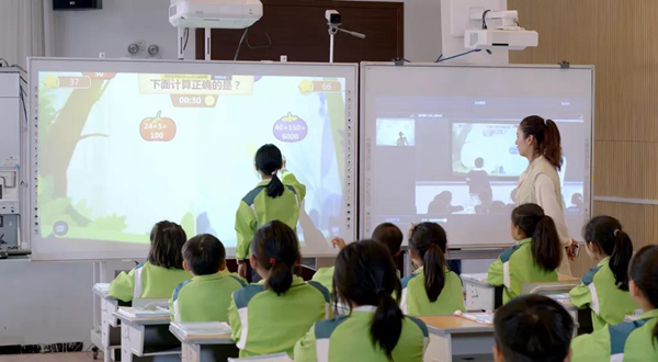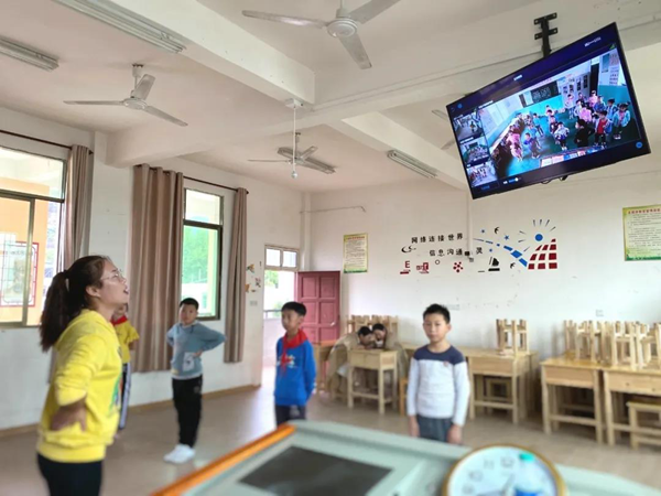 如今,老師在一體機(jī),就可以給兩地展開直播啟動(dòng)、同步游戲、同步書寫等操作。