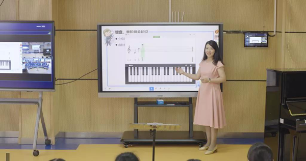 「我讓學(xué)生在智慧黑板的一組琴鍵上彈出所有的『do』,那邊的孩子也能同時(shí)在他們的黑板上操作,我們馬上看到兩邊孩子上課的情況!估鬄成倌陮m的李老師說。