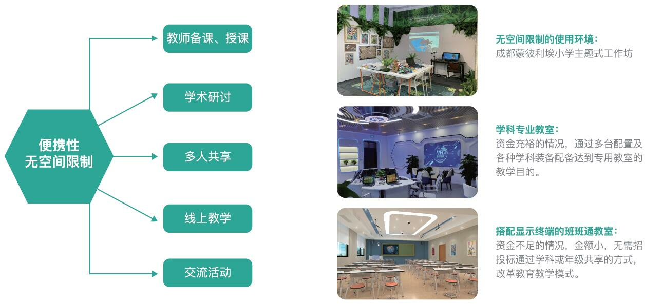雖然VR憑借其獨特優(yōu)勢,賦能教育,將虛擬現(xiàn)實技術與教學進行了充分融合,突破了傳統(tǒng)教學模式,實現(xiàn)了情境式教學,讓學生沉浸在可交互的虛擬學習場景中,體會與知識進行對話的樂趣。但眾所周知,受技術限制,VR并不能實現(xiàn)隨時隨地置身教育。