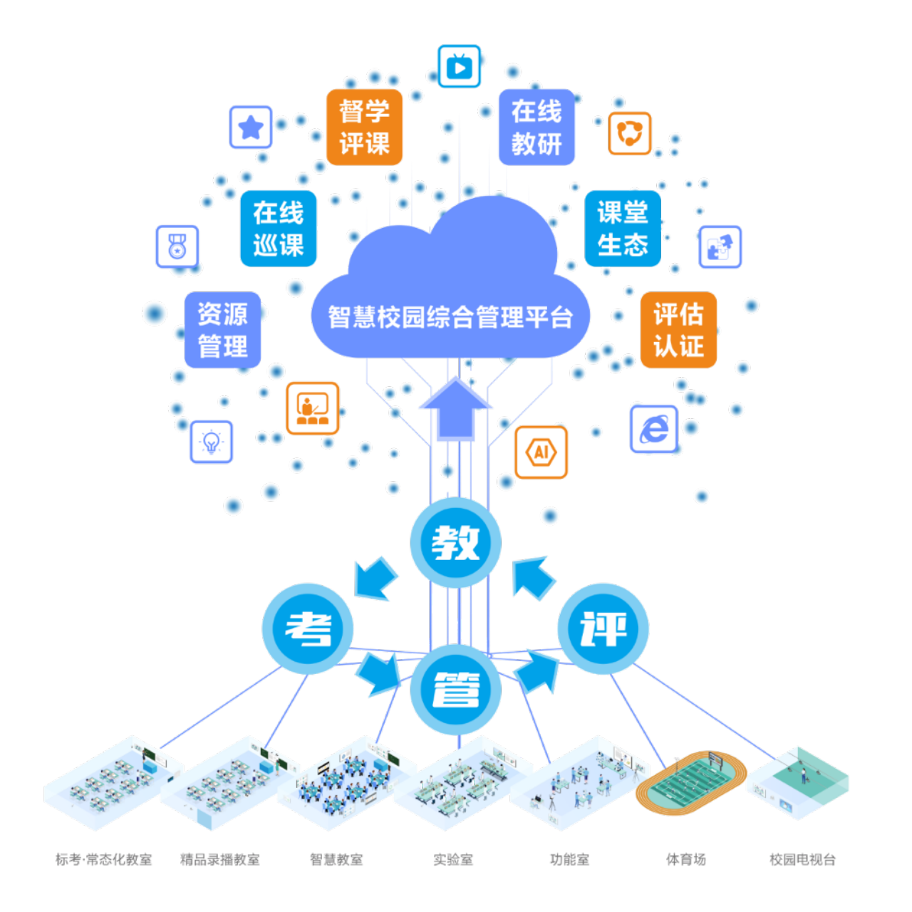 教學(xué)資源、匯聚共享。通過(guò)智慧校園綜合管理平臺(tái),實(shí)現(xiàn)教學(xué)資源的統(tǒng)籌管理、互動(dòng)調(diào)度、督學(xué)評(píng)課等應(yīng)用。有效連接學(xué)校實(shí)體教學(xué)空間,為全體師生構(gòu)建全場(chǎng)景教學(xué)和泛在學(xué)習(xí)的支撐環(huán)境。進(jìn)一步幫助學(xué)校解決課程開(kāi)不齊、開(kāi)不足、開(kāi)不好課的現(xiàn)狀,讓優(yōu)質(zhì)教育資源惠及更多的師生,助力推動(dòng)國(guó)家教育優(yōu)質(zhì)均衡發(fā)展。