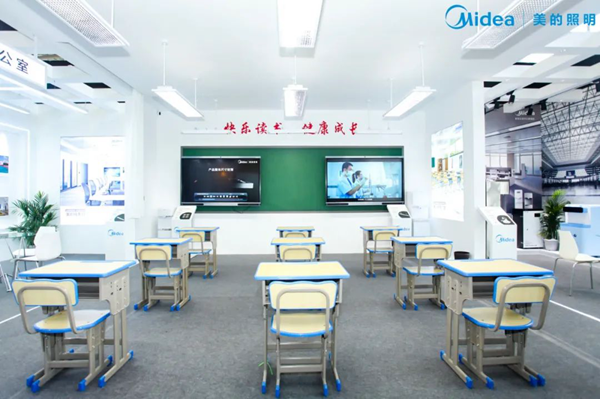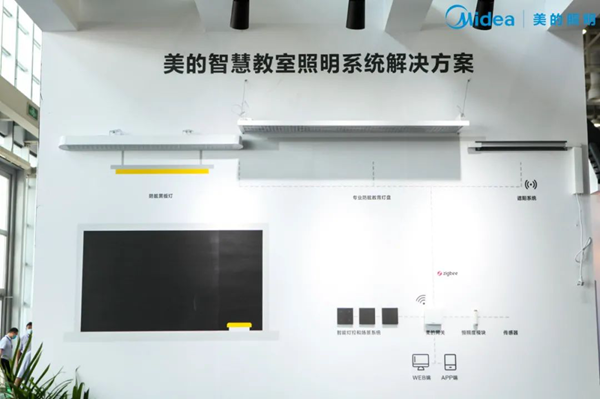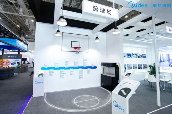 展示會(huì)上,美的照明通過(guò)模擬“教室區(qū)、辦公區(qū)、展示區(qū)、籃球區(qū)”,將微型校園搬到了現(xiàn)場(chǎng)。