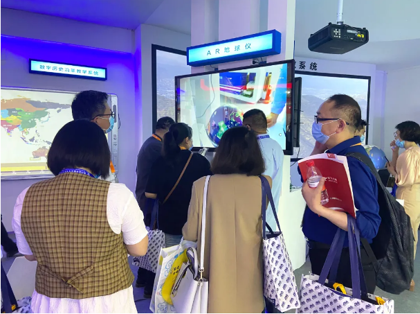 地理展區(qū)展出了環(huán)幕示教系統(tǒng)、數(shù)字立體地形、AR地理沙盤、天文演示儀、3D數(shù)字模型、AR地球儀等貼合教學(xué)的一系列產(chǎn)品,都是老朋友,當(dāng)然也有部分功能的升級(jí)。