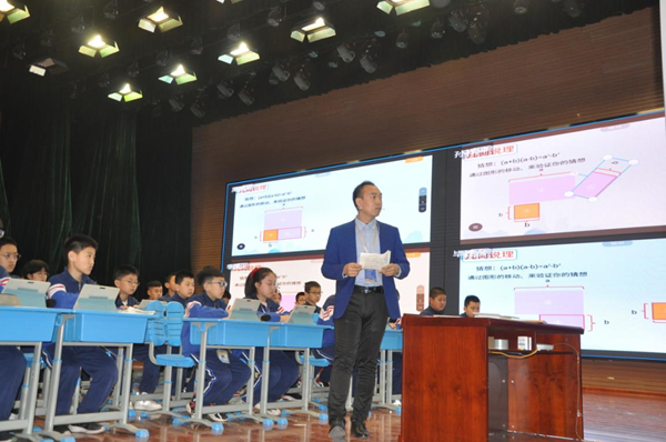 課堂展示環(huán)節(jié),竇新輝老師進行了智慧課堂環(huán)境下數(shù)學(xué)新授課案例展示,執(zhí)教《平方差公式》一課。