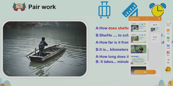 在英語展示課上,王麗梅老師執(zhí)教“Unit5 How do you get to school?”復(fù)習(xí)課。復(fù)習(xí)課對于學(xué)生們來說往往不像新授課那樣具有吸引力和挑戰(zhàn)性,王老師卻運用信息化技術(shù)手段打造了多種多樣的課堂活動,讓課堂更加生動有趣,激發(fā)了學(xué)生的學(xué)習(xí)興趣和學(xué)習(xí)熱情。