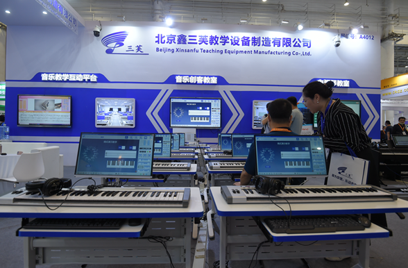 鑫三芙攜音樂創(chuàng)客教室、五線譜電教板、音樂教學(xué)互動(dòng)平臺(tái)等產(chǎn)品亮相本屆展會(huì)。