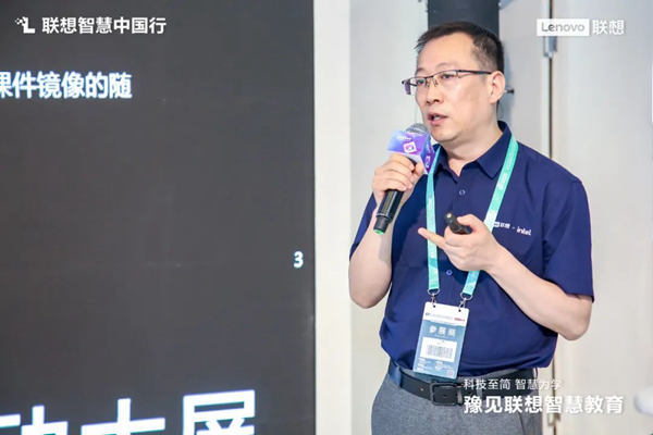 聯(lián)想集團(tuán)中國區(qū)商用大客戶事業(yè)部智慧教育總經(jīng)理金鑫在展區(qū)現(xiàn)場分享聯(lián)想智慧教育戰(zhàn)略,介紹了聯(lián)想全景解決方案。作為智慧教育的實(shí)戰(zhàn)派,聯(lián)想始終致力于以新IT賦能教育變革,以“端、邊、云、網(wǎng)、智”技術(shù)架構(gòu)打造下一代學(xué)習(xí)空間,同時(shí)賦能新型教學(xué)和教研,應(yīng)對(duì)操作系統(tǒng)多樣化、應(yīng)用多樣化、工具多樣化等新挑戰(zhàn)。