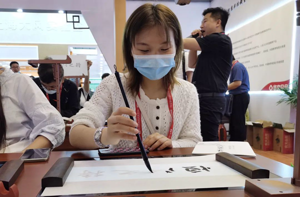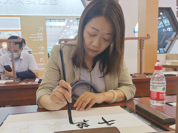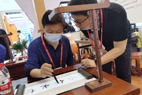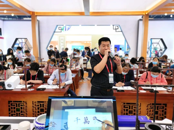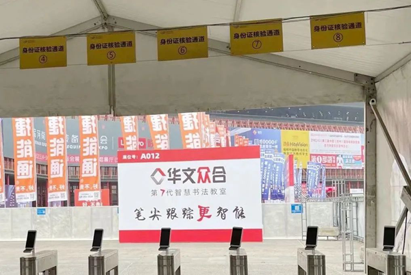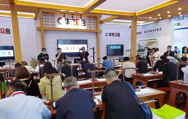 展會(huì)伊始,華文眾合典雅大氣的智慧書法教室瞬間吸引了眾多參觀者駐足觀看和問詢,展位人潮如織,異;鸨!