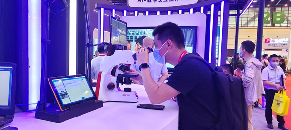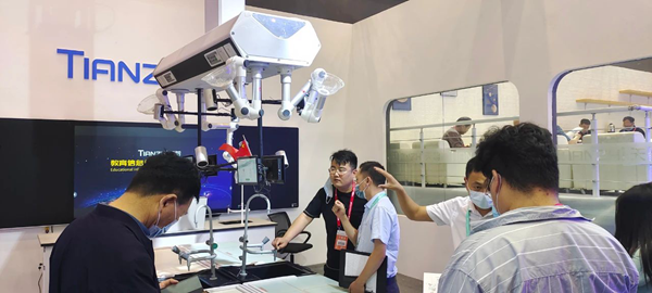 本次展會(huì)中,天智以“AI+教學(xué)交互操作平臺(tái)”及“AI+信息化實(shí)驗(yàn)室”向觀眾展示了天智一體式頂裝系統(tǒng)硬件設(shè)備、分體式考試系統(tǒng)硬件設(shè)備及天智AI評(píng)分系統(tǒng),教育行業(yè)的專業(yè)觀眾都對天智本次展出產(chǎn)品都表示了濃厚的興趣并紛紛體驗(yàn)了天智產(chǎn)品的功能。