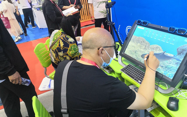 基礎(chǔ)教育領(lǐng)域的小學(xué)科學(xué)探索課程資源、初高中理化生實(shí)驗(yàn)資源、海洋生物、紅色教育展館等內(nèi)容讓參展觀眾眼前一亮。河南某小學(xué)的一位校長(zhǎng)觀看了生命科學(xué)模塊中蠶的模型,她表示”我在顯微鏡下都沒(méi)有看到這么清楚過(guò),蠶的蠕動(dòng)非常逼真、直觀和形象!庇袠I(yè)內(nèi)知名人士也表示,也未艾帶來(lái)的小學(xué)科學(xué)VR課件直觀、形象,符合小學(xué)生的認(rèn)知規(guī)律!
