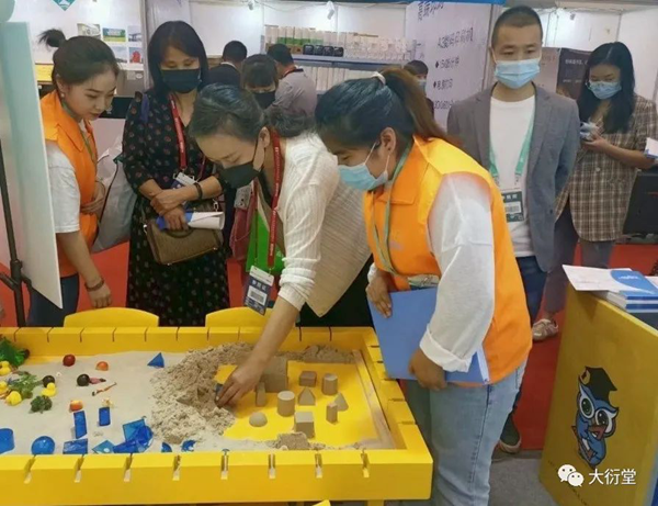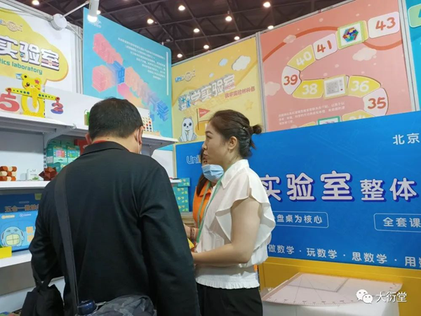 現(xiàn)場(chǎng)的小伙伴為參展人員耐心詳細(xì)地講解大衍堂的數(shù)學(xué)實(shí)驗(yàn)理念與綜合實(shí)踐解決方案,例如,以大衍堂首創(chuàng)、獨(dú)立研發(fā)的核心教具數(shù)學(xué)實(shí)驗(yàn)沙盤桌,通過(guò)沙盤提供一種數(shù)學(xué)教學(xué)方式,將抽象的問(wèn)題具象化、復(fù)雜的問(wèn)題簡(jiǎn)單化,在沙盤中搭建模型,建立場(chǎng)景,用可視化教學(xué)為廣大教育工作者解決實(shí)際問(wèn)題。