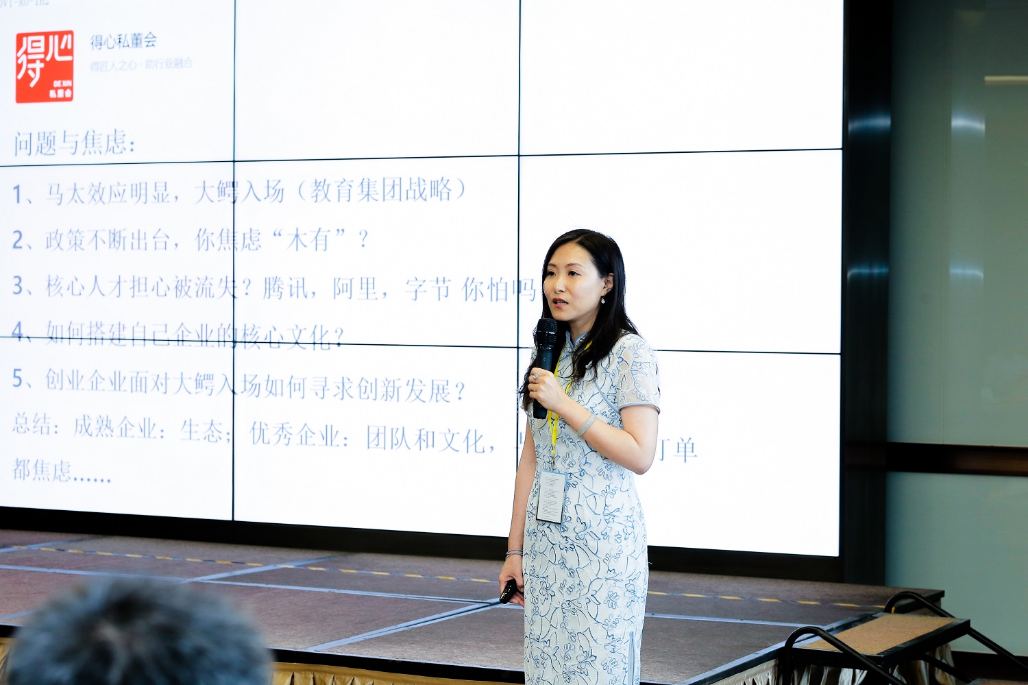 得心私董會(huì)創(chuàng)始人李懿娜首先以“行而不輟,未來可期”為主題和與會(huì)嘉賓一同回顧了得心私董會(huì)一路走來的發(fā)展和思考,并通過分析目前教育行業(yè)發(fā)展所面臨的機(jī)會(huì)與挑戰(zhàn),提出對(duì)策與建議。