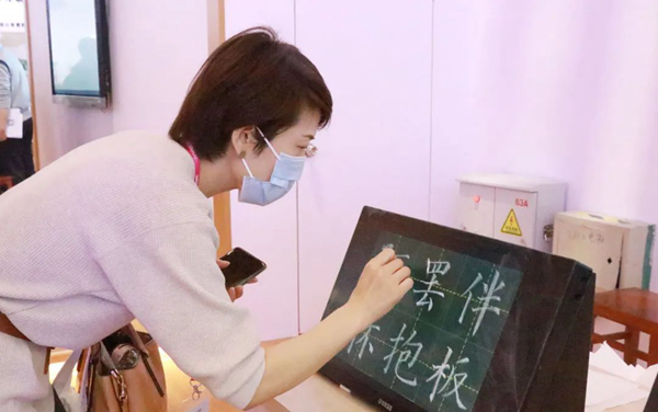 圖|高校教師代表體驗(yàn)第七代智慧書法教室