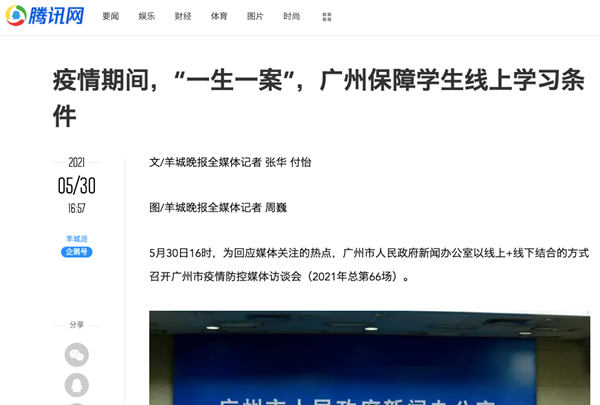 為做好疫情防控,近期廣州重點(diǎn)區(qū)域暫停線下教學(xué)。5月30日,廣州市疫情防控媒體訪談會進(jìn)一步指出:全市涉及疫情的區(qū)和學(xué)校按照“市級托底、各區(qū)統(tǒng)籌、一校一案、一班一案”的原則,積極穩(wěn)妥地開展線上教育準(zhǔn)備,其他區(qū)和學(xué)校將積極做好線上教育工作應(yīng)急預(yù)案。