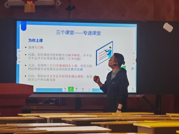 前郭縣室教師進修學校信息技術(shù)教研王主任對“三個課堂”建設(shè)政策解讀及本地建設(shè)目標進行了宣導。從松原市前郭縣“互聯(lián)網(wǎng)+教育”工作的現(xiàn)狀及發(fā)展歷程以及“三個課堂”建設(shè)與常態(tài)化應(yīng)用的啟動背景進行分析,并表示了今后前郭縣將就“三個課堂”建設(shè)與應(yīng)用進行不斷實踐與探索的決心。