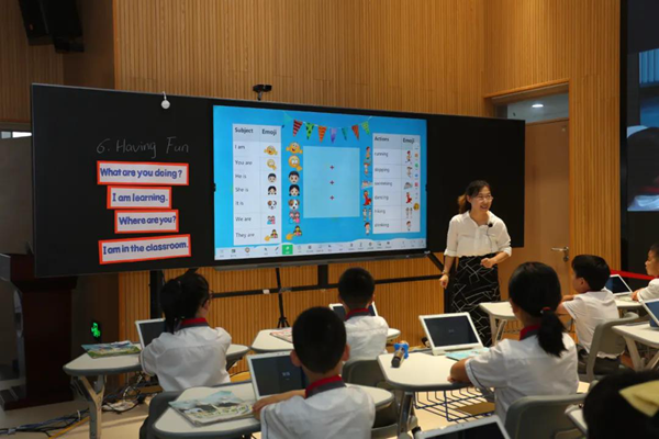 濟南托馬斯實驗學校王欽老師《Having Fun》英語展示課中,教師全英文教學,通過希沃易課堂的【教師傳屏、學生傳屏、課件推送、截屏推送、蒙層猜圖】等功能,極具代入感的個性化場景教學極大地點燃了學生們的熱情,直到課堂結(jié)束,學生們?nèi)耘f意猶未盡。同時借助希沃易課堂【課堂競賽】功能,調(diào)動學生的學習興趣,讓學生在游戲中學習知識。使得在場所有領(lǐng)導、老師、學生以及家長充分感受到了信息化智慧教學的魅力,完全打破以往枯燥煩悶的教學。
