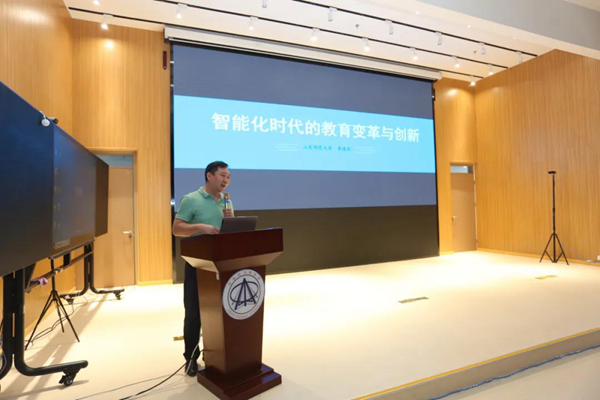 山東省智慧教育研究院李逢慶院長對智慧課堂政策進行了解讀,主要以智能化時代的教育變革與創(chuàng)新為主題,延伸當前教育信息化、智能時代教學變革、信息技術(shù)與教學融合創(chuàng)新三個部分,提出融合是實現(xiàn)教育教學流程再造與結(jié)構(gòu)重組的關(guān)鍵,簡單介紹“三個課堂”:專遞課堂、名師課堂、名校網(wǎng)絡(luò)課堂,而教育的規(guī)律自始至終都是因材施教,從‘一刀切的傳統(tǒng)教學模式’變革成為‘個性化數(shù)字化學習’,實現(xiàn)教育公平,提升教育質(zhì)量。