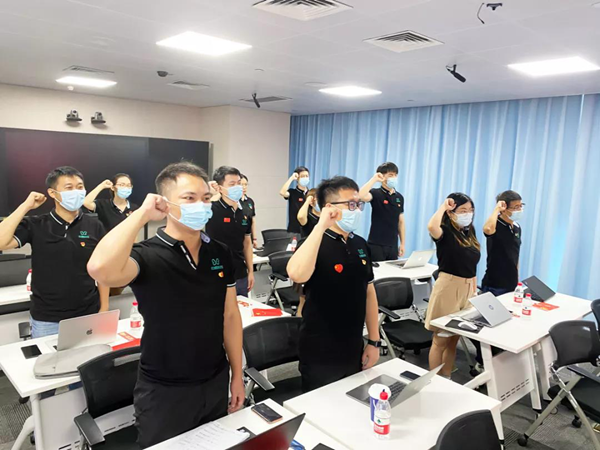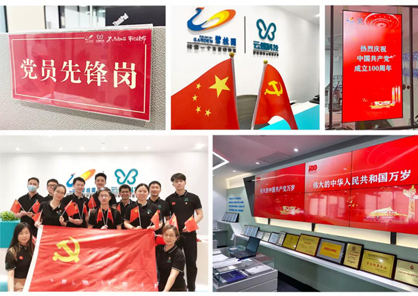今年6月,云蝶公司黨支部發(fā)出《開展“黨建引領(lǐng) 凝心聚力 迎建黨百年”系列活動的通知》,并發(fā)出《云蝶科技獻禮建黨100周年倡議書》,大力營造迎黨慶、重黨建的濃厚氛圍,逐步把黨性教育推向深入。今天,云蝶黨支部還組織了紅歌唱響、“我與黨旗合個影”、黨員亮名牌等活動,同事們用熱情洋溢的笑容和深情寄語為建黨百年華誕獻上祝福。